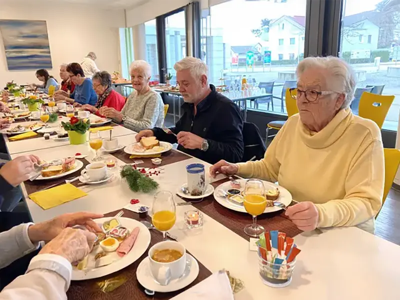 Sich einmal im Monat am Sonntagmorgen mit anderen zum Zmorge und gemütlichen Plaudern treffen, von 9.30 Uhr an bis gegen Mittag. Von Esther Ramstein im Quartierwohnzimmer der Alterssiedlung ASW in Kempten organisiert.